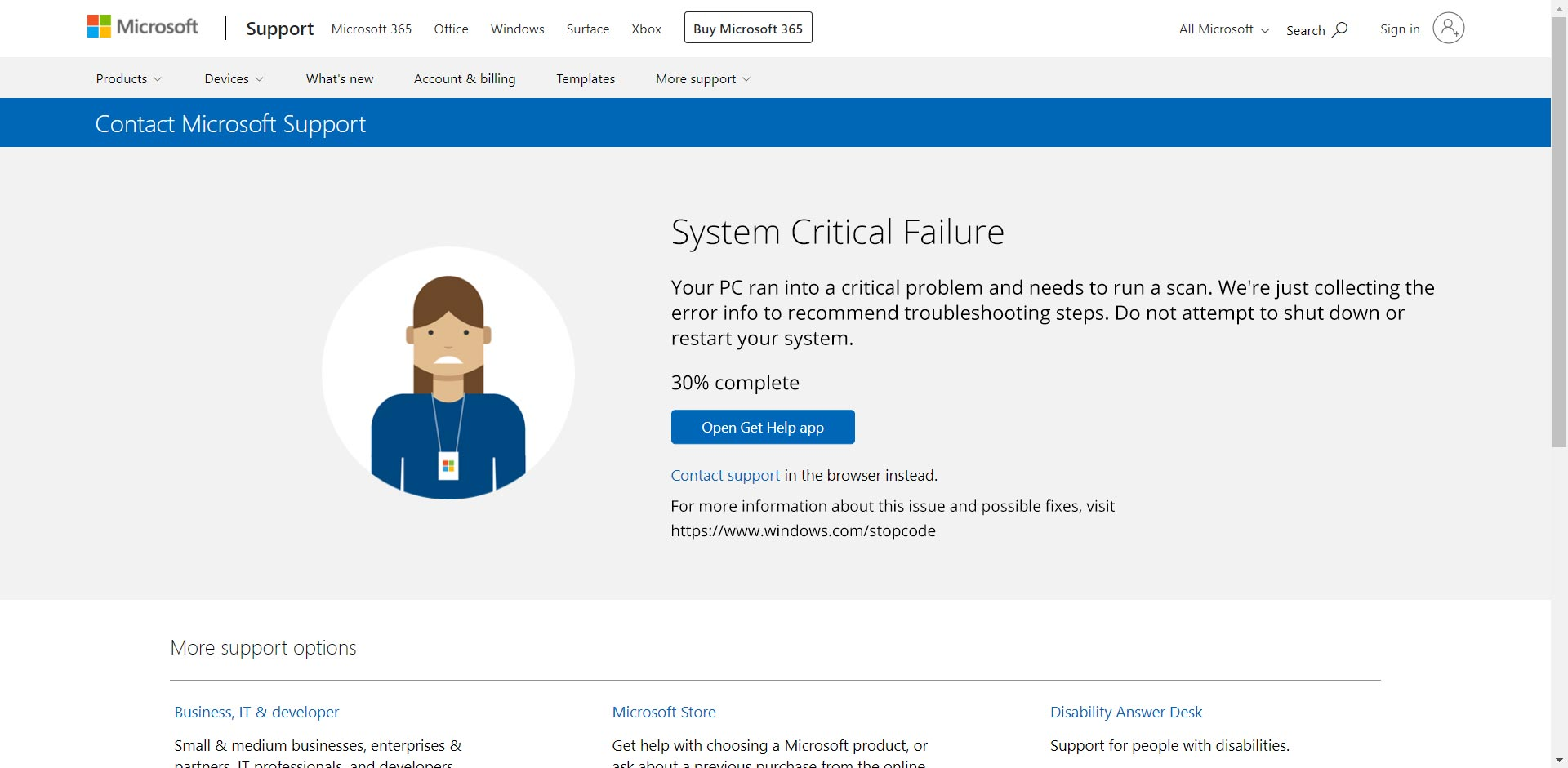 Appelez le support Windows :